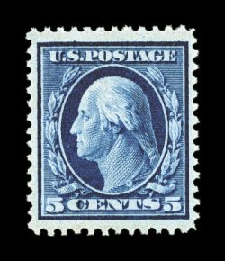 267 nh 335 image#335, 5c Blue, unusually well centered within large margins, deep color and a vivid impression on bright white paper, o.g., n.h., extremely fine; photocopy of a 2001 PF certificate for a block of four, this being the bottom left stamp. (Image) $120.00