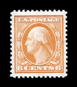 268 nh 336 image#336, 6c Red orange, an outstanding mint example, being impeccably well centered within extravagantly large margins, wonderfully bright color, unblemished o.g., n.h., extremely fine; a particularly large-margined gem; photocopy of a 2004 PF certificate for the plate block from which this came. (Image) $140.00
