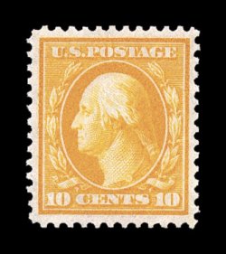 270 nh 338 image#338, 10c Yellow, excellent centering within large margins, gorgeous intense color and impression, o.g., n.h., extremely fine; a premium quality stamp; 2004 PF certificate. (Image) $150.00