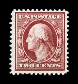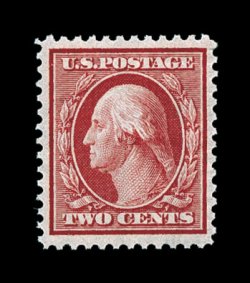 281 og 353 image#353, 2c Carmine coil, perf. 12 vert., guide line pair, exceptionally fresh, sumptuously rich color and a well incised impression, nicely centered within large margins, o.g., lightly hinged, very fine; 2001 PF certificate; ex-Lessin. (Image) $750.00
