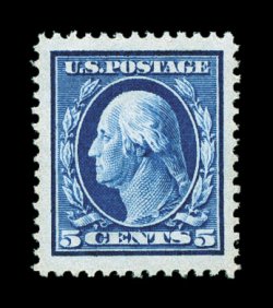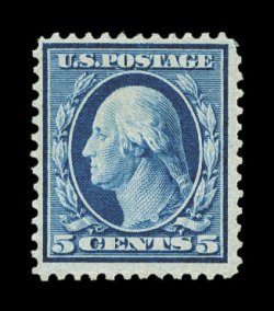 297 nh 378 image#378, 5c Blue, an eye-arresting mint single, being remarkably well centered within enormous margins, beautiful color that is exceedingly rich and bright, deeply etched impression on pristine white paper, flawless o.g., n.h., extremely fine; a stunning jumbo-margined stamp; 2002 PF certificate. (Image) $67.50