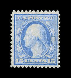 290 nh 366 image#366, 15c Pale ultramarine on bluish paper, well centered within large margins, attractive pastel color, pristine o.g., n.h., very fine; certified never hinged examples of this stamp are few and far between; 1968 and 2001 PF certificates. (Image) $3,100.00