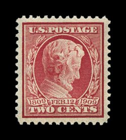 291 nh 369 image#369, 2c Lincoln on bluish paper, a superb mint single, possessing extravagantly large an perfectly balanced margins all around, sumptuously rich color and a well defined impression, unblemished o.g., n.h., an extremely fine gem in every regard; 1997 PF certificate. (Image) $425.00