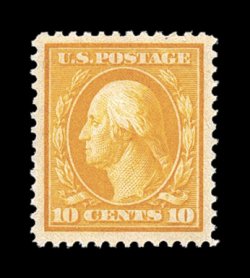 300 nh 381 image#381, 10c Yellow, excellent centering amid extravagantly large margins, gorgeous radiant color and a strong impression, o.g., n.h., extremely fine gem; a highly select example; 2002 PF certificate. (Image) $240.00