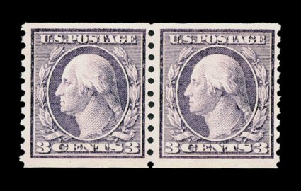 362 nh 456 image#456, 3c Violet rotary coil, Ty. I, perf. 10 vert., mint pair, well centered and margined, fresh color, o.g., n.h., very fine; 1999 PF certificate. (Image) $1,250.00