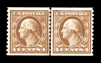 363 nh 457 image#457, 4c Brown rotary coil, perf. 10 vert., joint line pair, extraordinarily well centered and margined, bright rich color and a crisp impression, o.g., n.h., extremely fine; a pristine line pair; 1987 PF certificate; ex-Lessin. (Image) $325.00