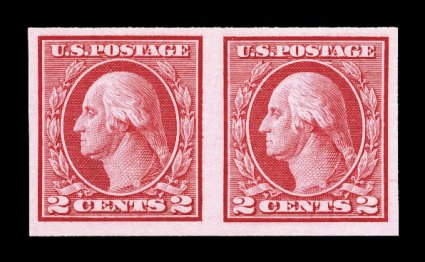 367 nh 459 image#459, 2c Carmine imperforate coil, pair, brilliantly fresh, large margins all around, o.g., n.h., extremely fine; 1989 PF certificate; ex-Weisman. (Image) $750.00