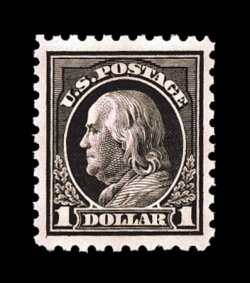 368 nh 460 image#460, $1.00 Violet black, an impressive mint single, being especially well centered within lavishly large margins, "post office" fresh, with deep luxuriant color and an especially detailed impression on crisp white paper, pristine o.g., n.h., extremely fine; premium quality never hinged examples of this stamps are seldom offered; 1996 and 2004 PF certificates. (Image) $1,850.00