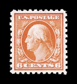 375 nh 468 image#468, 6c Red orange, exceedingly well centered and margined, bright fresh color, o.g., n.h., extremely fine; 2001 PF certificate for a block of four, this being the top left stamp. (Image) $200.00