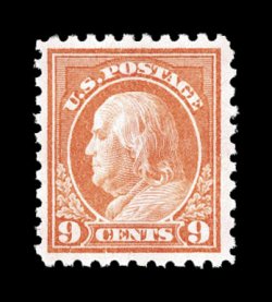 378 nh 471 image#471, 9c Salmon red, brilliantly rich color on fresh white paper, well centered and margined, o.g., n.h., choice very fine; photocopy of a 1999 PF certificate for the plate block from which this came. (Image) $130.00