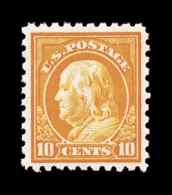 379 nh 472 image#472, 10c Orange yellow, pristine mint single, glorious bright color and a strong impression on immaculate white paper, exceptionally well centered, unblemished o.g., n.h., extremely fine; 2005 PF certificate. (Image) $240.00