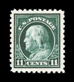 380 nh 473 image#473, 11c Dark green, very well centered within enormously large margins, rich luxuriant color and a razor-sharp impression, o.g., n.h., an extremely fine jumbo; 1999 PF certificate. (Image) $95.00