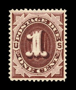 446 nh J21 image#J21, 50c Red brown, an incredibly fresh and choice mint example of this scarce postage due high value, possessing a wonderful overall brilliance, with sumptuously rich color and a sharp impression on crisp paper, exceedingly well centered within large margins, o.g., n.h., extremely fine overall; a terribly difficult to find in this select never hinged condition; 1997 and 2004 PF certificates. (Image) $1,900.00
