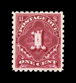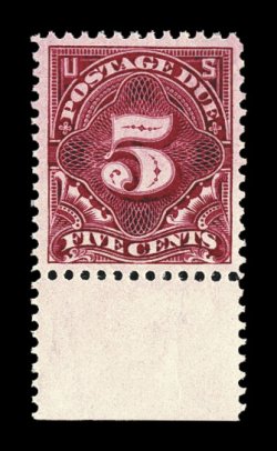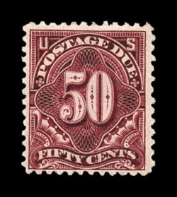 459 nh J50 var. image#J50 var., 50c Carmine rose, marvelously bright and fresh, nicely centered within exceptionally large margins, o.g., n.h., very fine; a scarce postage due, particularly in never hinged condition; 2005 PF certificate. (Image) $2,600.00