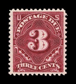451 nh J33 image#J33, 3c Deep claret, wonderfully fresh, intense color and a razor-sharp impression, well centered, o.g., n.h., choice very fine; an especially elusive stamp never hinged; 2001 PF certificate. (Image) $475.00