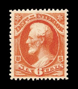 508 nh O99 image#O99, 6c Interior, on soft porous paper, a gorgeous mint example of this relatively common stamp in a most uncommon quality, featuring stunning color that is incredibly deep and brilliant, especially intense impression as well, extraordinarily well centered within large margins, o.g., never hinged, extremely fine gem; 2004 PF certificate; ex-"Vineyard".. (Image) for hinged $12.00