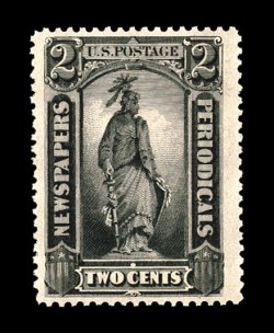 514 nh PR57 image#PR57, 2c Black, gem mint example, featuring incredibly wide margins and being exceedingly well centered within them, strong color and impression, pristine o.g., never hinged, extremely fine; 2000 PSE certificate (right selvage subsequently removed) and a 2004 PF certificate; ex-"Silver Lake". (Image) for hinged $50.00
