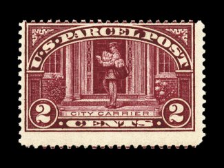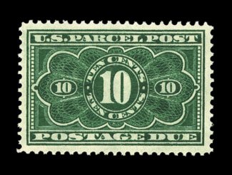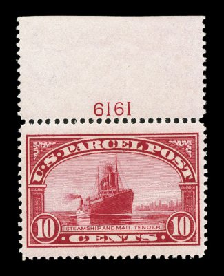 533 nh Q10 image#Q10, 50c Parcel Post, exceptionally well centered within uncharacteristically large margins, strong rich color and a crisp impression, unblemished o.g., n.h., extremely fine; 2000 PF certificate. (Image) $700.00
