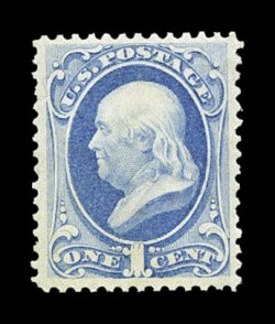 138 nh 182 image#182, 1c Dark ultramarine, uncommonly well centered and margined, strong rich color and a crisp impression, pristine o.g., never hinged, extremely fine; quite scarce in this premium never hinged quality; 2005 PF certificate. (Image) for hinged $350.00