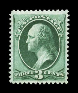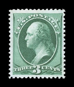 139 nh 184 image#184, 3c Green, marvelously bright and fresh, well centered within large margins, o.g., never hinged, extremely fine; 1999 PF certificate. (Image) for hinged $120.00