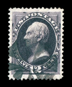 132 O 162 image#162, 12c Blackish violet, a striking used single, possessing margins of enormous size and being marvelously well centered within these oversized borders, sumptuously rich color and a well incised impression on fresh white paper, neatly struck circle of wedges cancel, extremely fine; 1992 PF certificate. (Image) $125.00