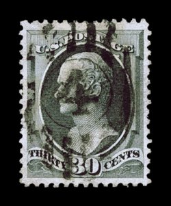 124 O 154 image#154, 30c Black, a particularly handsome used example that is extraordinarily well centered within large margins, wonderfully fresh color and a clean impression on crisp white paper, light blue cork which is seldom seen on the 30c value despite its modest premium in the Scott catalog, extremely fine; 1975 APS and 1996 PF certificates; ex-Morris. (Image) $277.50