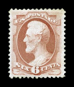 141 og 186 image#186, 6c Pink, excellent centering within large margins, strong rich color and impression, o.g., lightly hinged, extremely fine; a handsome mint example of this scarce Bank Note; 1979 and 2001 PF certificates. (Image) $1,100.00