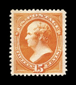 142 nh 189 image#189, 15c Red orange, exceptionally well centered within large margins, deeply rich color and a strong detailed impression, o.g., never hinged, extremely fine; photocopy of a 2004 PF certificate for a strip of four, this being the left stamp. (Image) for hinged $350.00