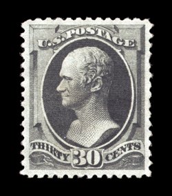 143 og 190 image#190, 30c Full black, exceptionally well centered amid uncommonly large margins, intense color and impression, full o.g., lightly hinged, extremely fine; an especially choice mint example of this scarce Bank Note; 1969 and 2002 PF certificates. (Image) $1,100.00
