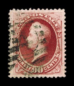 144 O 191 image#191, 90c Carmine, a fabulous quality used single, being incredibly well centered within lavishly large margins, strong rich color, light supplementary mail cancel, extremely fine; although this high value can be found in premium used condition, very few are this well centered and margined; 1999 PF certificate. (Image) $325.00