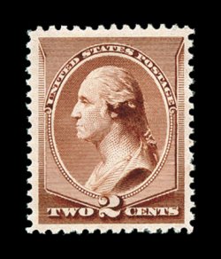 151 nh 210 image#210, 2c Red brown, extraordinarily well centered within uncharacteristically large margins, sumptuously rich color and a well defined impression, o.g., n.h., extremely fine; 2003 PF certificate. (Image) $160.00