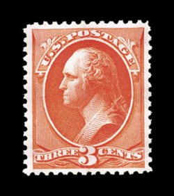 154 nh 214 image#214, 3c Vermilion, choice "post office" fresh mint single, possessing glorious rich color and an especially detailed impression, exceedingly well centered within large margins, o.g., n.h., extremely fine; 2005 PF certificate. (Image) $240.00