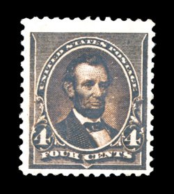 165 nh 222 var. image#222, 4c Blackish brown, remarkably intense color and impression, showing the distinctive black brown shade quite well, nicely centered within extra-large margins, o.g., n.h., very fine; the first certified example of this elusive variety we have offered; 2004 PF certificate. (Image) $350.00