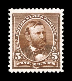 166 nh 223 image#223, 5c Chocolate, an outstanding mint single, being wonderfully well centered within lavishly large margins, brilliantly rich color and an excellent clarity of impression, o.g., n.h., an extremely fine large-margined gem; 2003 PF certificate. (Image) $300.00
