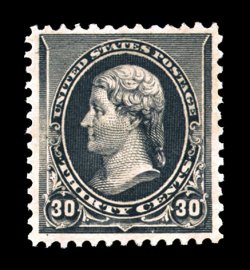 171 nh 228 image#228, 30c Black, exceptionally well centered within large margins, strong color and impression, o.g., n.h., extremely fine; select quality never hinged examples of #228 are quite difficult to come by; 2005 PF certificate. (Image) $1,400.00