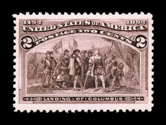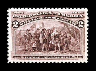 174 nh 231 image#231, 2c Columbian, excellent centering within especially large margins, rich luxuriant color and a well incised impression, pristine o.g., n.h., extremely fine; 2005 PF certificate. (Image) $55.00