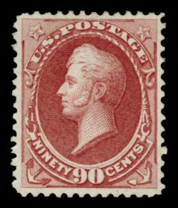 183 og 166 image#166, 90c Rose carmine, choice mint single of this scarce high value, exceptionally well centered within large margins, sumptuous color in the attractive Continental Bank Note shade, crisp detailed impression, full o.g., lightly hinged, extremely fine; a very scarce stamp in such premium quality; 2000 PF certificate. (Image) $2,750.00
