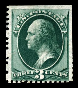 186 og 169 image#169, 3c Blue green special printing, without gum as issued, a fresh sound example of this, the rarest of all of the Continental Bank Note Co. special printings, with deep rich color and a sharp detailed impression, fine; less than 40 copies are thought to still exist; 1970 PF certificate. (Image) $17,500.00