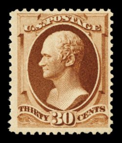 224 nh 217 image#217, 30c Orange brown, an incredibly fresh mint single, possessing sumptuously rich color and a razor-sharp impression on pristine paper, quite well centered within large margins, immaculate o.g., never hinged, very fine; 1980 PF certificate for block of four, this being the bottom right stamp and a 2005 PF certificate as a single. (Image) $1,500.00