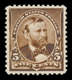 233 ogu 223 image#223, 5c Chocolate, extraordinarily well centered and margined, deeply rich color and a crisp detailed impression, o.g., extremely fine; 2003 PSE certificate (XF-Superb 95; SMQ $390.00). (Image) $95.00
