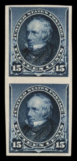 237 ng 227a image#227a, 15c Indigo imperforate, vertical pair, unused, large margins all around, strong color, very fine; 2005 PSE certificate. (Image) $625.00