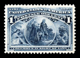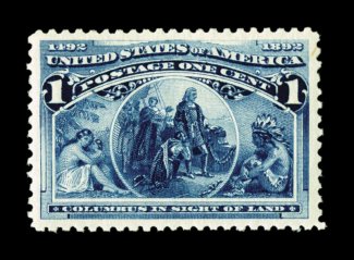 244 nh 230 image#230, 1c Columbian, especially well centered within uncharacteristically large margins, strong color and impression on fresh paper, pristine o.g., n.h., extremely fine. (Image) $57.50