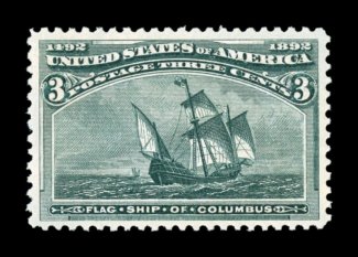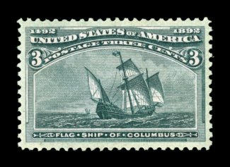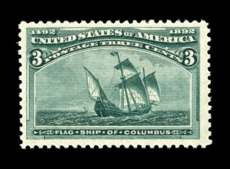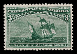 256 nh 232 image#232, 3c Columbian, pristine mint single, brilliantly fresh, gorgeous rich color and impression on bright white paper, outstanding centering within wide margins, immaculate o.g., never hinged, extremely fine; 2006 PF certificate. (Image) $150.00