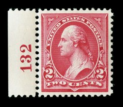 327 nhu 266 image#266, 2c Carmine, Ty. II, choice left margin plate no. 132 single, possessing impeccable centering amid large balanced margins, wonderfully bright and fresh, o.g., very lightly hinged, extremely fine; 2006 PSE certificate (XF-Superb 95; SMQ $170.00). (Image) $35.00