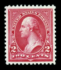 328 nh 267 image#267, 2c Carmine, Ty. III, striking mint example in the finest possible condition, incredibly well centered amid extravagantly large margins, marvelously bright and fresh, rich vibrant color, pristine o.g., n.h., extremely fine; while #267's are relatively common, few exist that can compare to this gem copy; ex-McCree. (Image) $14.00
