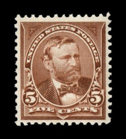 332 nh 270 image#270, 5c Chocolate, pristine mint single, remarkably well centered within uncommonly large margins, fresh with vibrant color, full crisp perforations, clean o.g., never hinged, extremely fine; 2004 PF certificate. (Image) $110.00