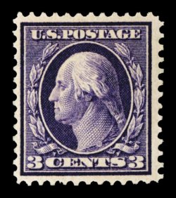 469 og 359 image#359, 3c Deep violet on bluish paper, rich color and a crisp impression on bright paper, fairly well centered, o.g., lightly hinged, few gum soaked perf. tips at top left and unobtrusive natural inclusion, nearly very fine; photocopy of a 1987 PF certificate for a block of four from which this was taken and 2006 PF certificate as a single. (Image) $2,000.00