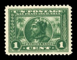 509 nhu 397 image#397, 1c Panama-Pacific, gem mint single, uniformly lavish margins all around, prooflike color and impression, o.g., n.h., extremely fine; a particularly choice example; 2005 PF certificate (XF-Superb 95; $325.00). (Image) $45.00