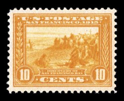 516 nh 400A image#400A, 10c Panama-Pacific, orange, attractive mint single that is well centered amid large margins, gorgeous intense color and impression, o.g., n.h., fresh and extremely fine; 1992 PF certificate. (Image) $500.00