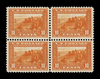 519 ogbl 400A image#400A, 10c Panama-Pacific, orange, mint block of four, brilliantly fresh, with vibrant color on bright paper, o.g., very fine. (Image) $900.00+
